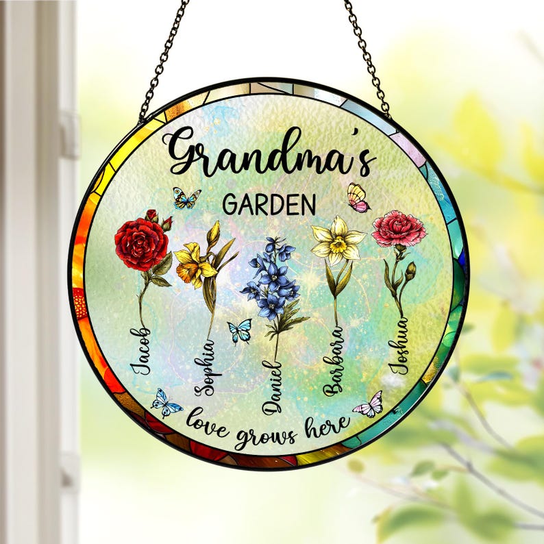 Personalized Grandma’s Garden Gift For Grandma, Grandma Gift, Mother’s Day Gift For Grandma, Nana Birth Month Flower Stain Glass Suncatcher